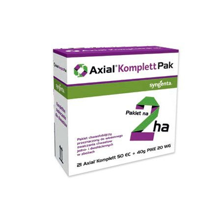 Axial Komplet Pak to zestaw herbicydów do firmy syngenta do zwalczana chwastów jedno i dwuliściennych w zbożach na wiosnę. Zwalcza miotłę, przytulię czepną, chaber, mak polny.